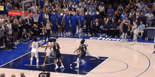像去年常规赛独行侠与火箭的一场,东契奇三分线内一步手一抛压哨命中。