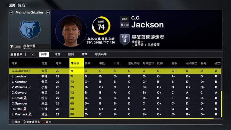 直播吧8月30日讯 今日NBA 2K26正式发布,灰熊队球员能力值如下: